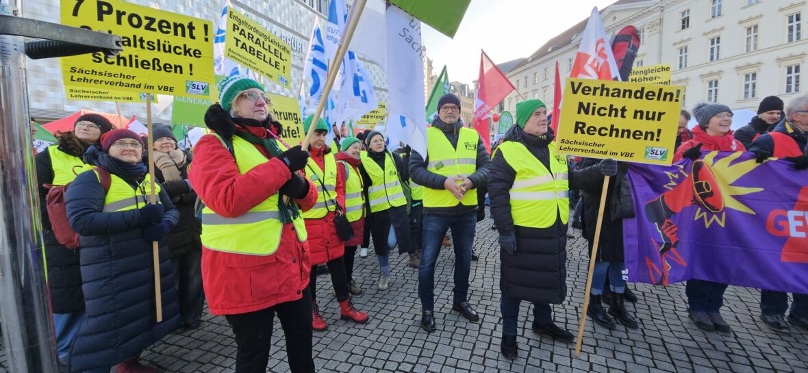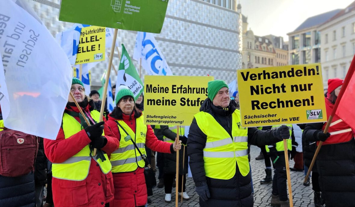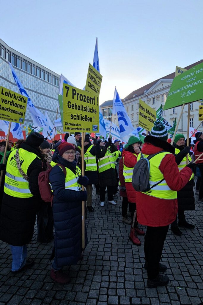Die Gewerkschaften haben regional gestaffelt zu Warnstreiks aufgerufen. Am 23. Januar 2026 legen die Lehrkräfte der Region Dresden ganztägig die Arbeit nieder. Vom 26. bis 28. Januar 2026 folgen die Regionen Zwickau, Chemnitz und Bautzen. Den Höhepunkt der Arbeitskampfmaßnahmen bildet ein landesweiter Warnstreik am 29. Januar 2026 mit zentralen Protestkundgebungen in Dresden und Leipzig. →Mehr dazu im Beitrag
