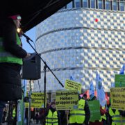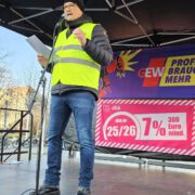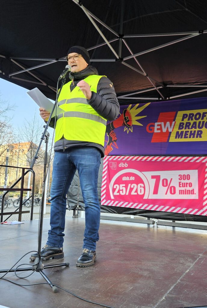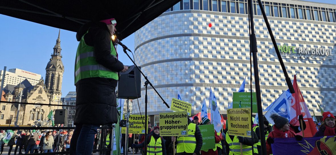 Steffen Winkler, Tarifverantwortlicher des SLV und Hauptredner der Leipziger Kundgebung, machte die Position der Gewerkschaften deutlich: