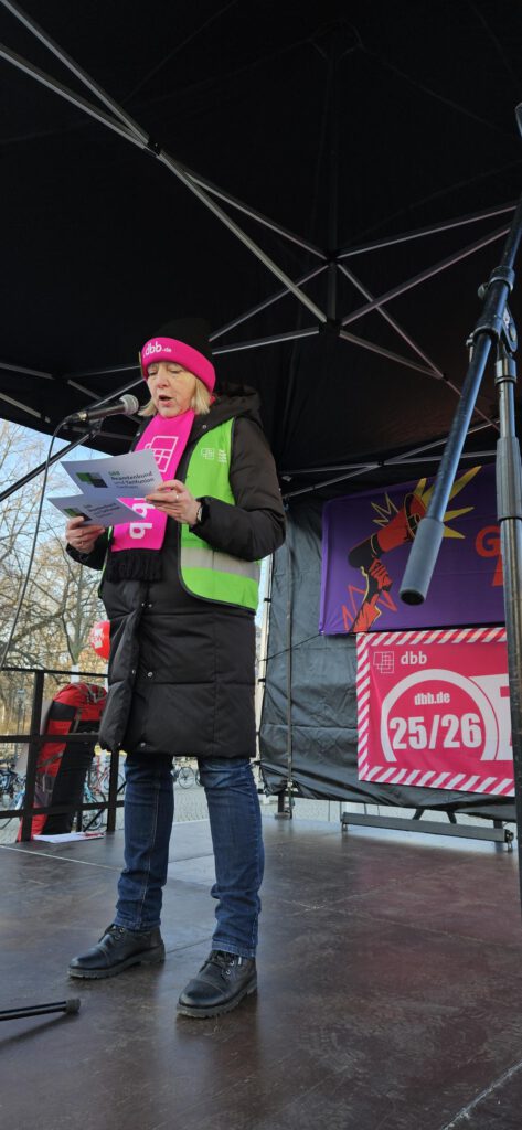 „Wir sind heute hier für all jene, die diesen Staat jeden Tag am Laufen halten. Und wir sagen klar: Wenn die Länder weiter mauern und weiterhin kein verhandlungsfähiges Angebot vorlegen, weiten wir die Warnstreiks aus. Nicht, weil wir das wollen – sondern weil uns keine Wahl gelassen wird.“