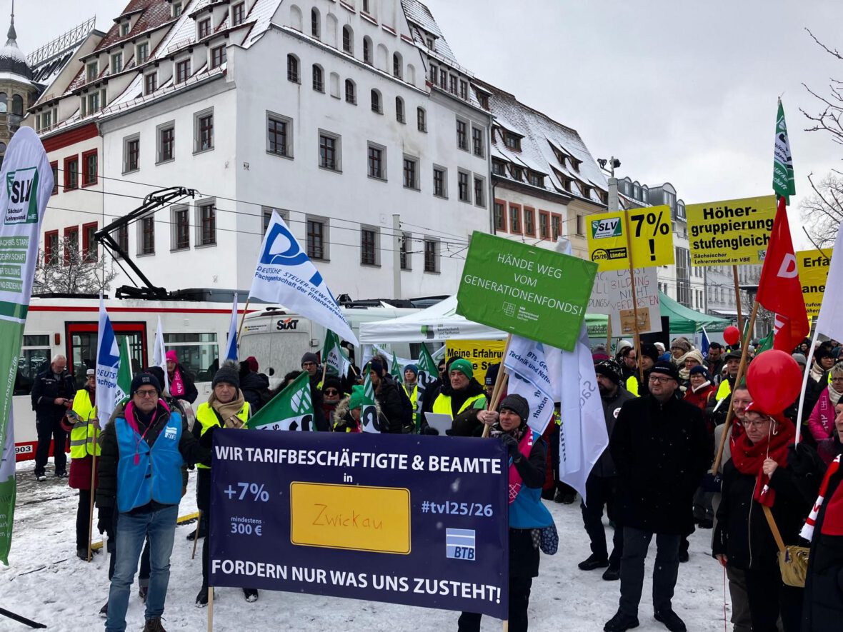 Die Warnstreiks in Sachsen finden regional gestaffelt statt. Nach Leipzig, Dresden und Zwickau folgen in den nächsten beiden Tagen Chemnitz und Bautzen. Zum landesweiten Warnstreik am 29. Januar 2026 sind alle sächsischen Lehrkräfte aufgerufen. Ziel ist es, den Druck vor der entscheidenden dritten Verhandlungsrunde am 11. Februar 2026 weiter zu erhöhen. →Mehr dazu im Beitrag